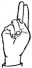 На ћирилици написано БЕРИША БАРАЋ састоји се из 11 слова [?]. Исписано ћириличном једноручном азбуком за глувонеме: